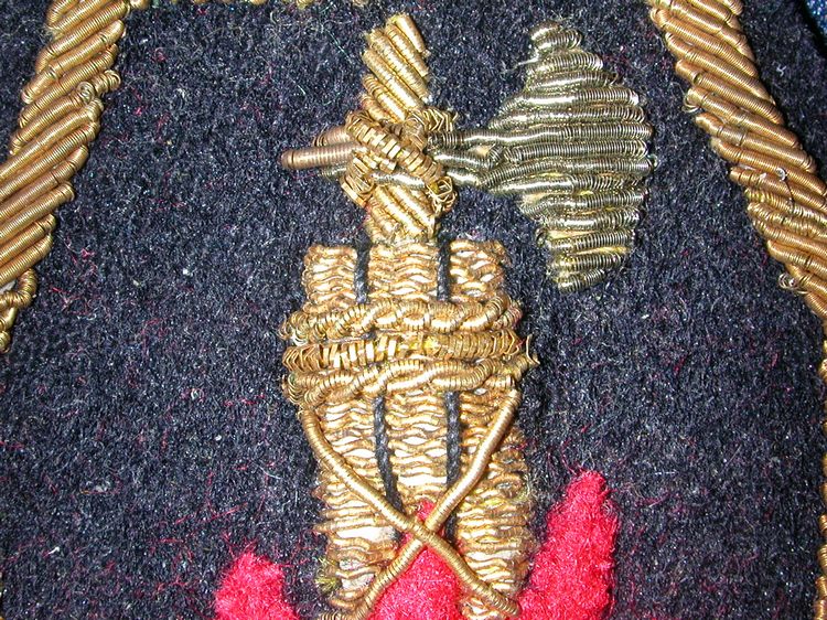la prova della lampada di Wood che ha evidenziato che il distintivo è stato effettivamente cucito e scucito da un abito (si vedono ache sul retro i segni che ha lasciato l'ago)