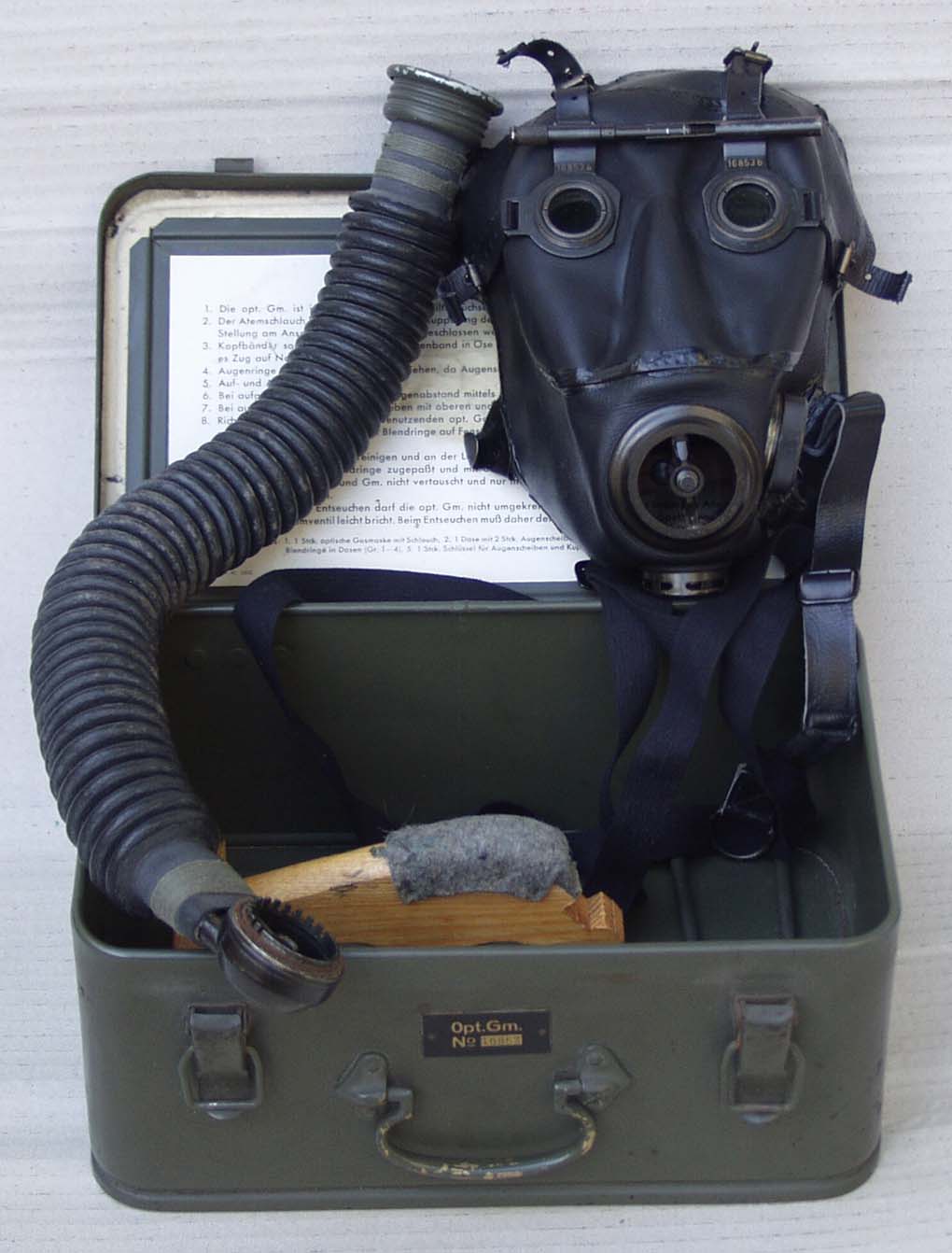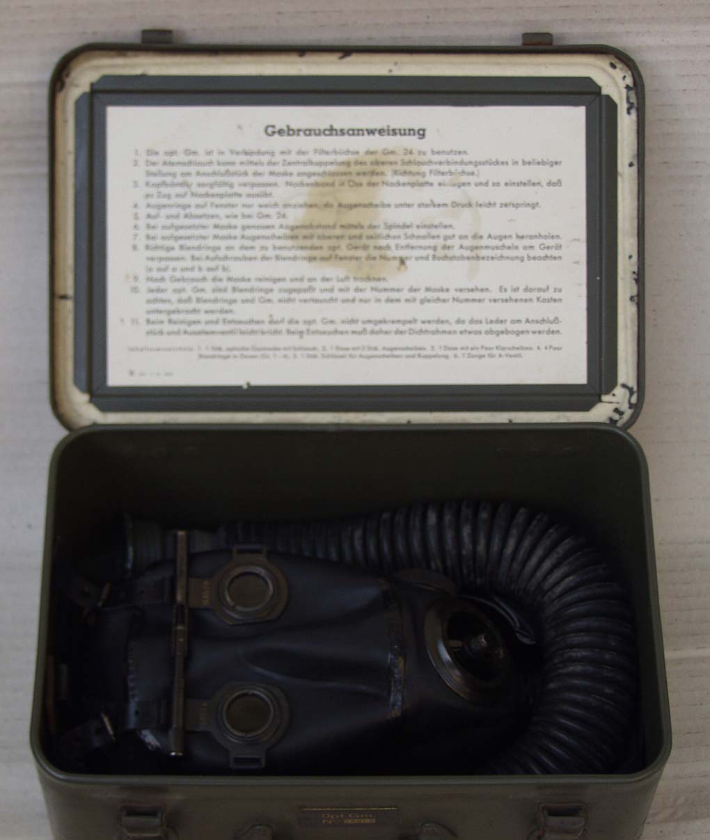 ho visto il dettaglio di portamaschera inviato da Btgak47; quello con le due spade incrociate ed i numeri 56/50/2: è un marchio d'ispezione dell'esercito Cecoslovacco, anni 50-60: quelle forze armate usarono un'enorme quantità* di materiale ex-Wehrmacht (che sotto l'occupazione germanica essi stessi tra l'altro producevano), che unito a quello simil-sovietico tipico degli eserciti del Patto di Varsavia, creava dei simaptici pot-pourri uniformologici. L'aviazione Cecoslovacca usò anche le macchine aerofotografiche Zeiss del tempo di guerra: alla fiera dell'elettronica di Pordenone ne comprai una nel 1990, con marchi di carico dell'aviazione Cèca, anni '70, accanto ai vecchi timbri della Luftwaffe.