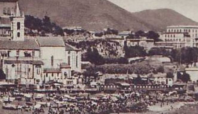 e' al livello dell' abside della chiesa a destra tra le piante rivolto verso il mare , doveva essere bello grosso
