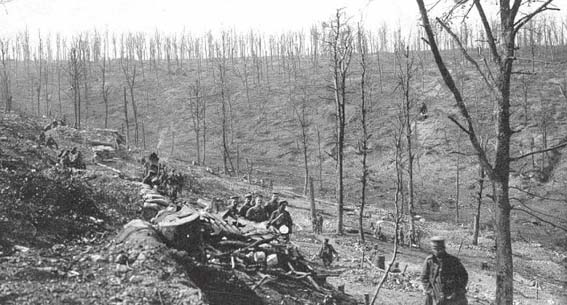 Vista del suolo martoriato vicino al Forte di Douaumont
