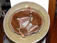 sti invece sono i miei greci. Mentre il primo e classico M34/39, il secondo e' un sud africano riadattato con un'imbottitura in tela cerata(modello 44?). Interessanti i rivetti che fissano i ganci del soggolo(greco).Infatti sono ancora quelli del primo tipo,in stile MK1 inglese[ciao2]