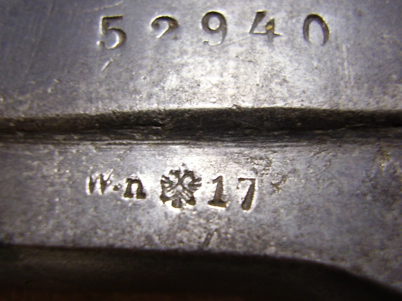 Compare inoltre il punzone di accetazione militare Wn(aquila)17 ove viene indicata il luogo di accetazione che in questo caso è l'arsenale di Vienna e l'anno che è il 1917.