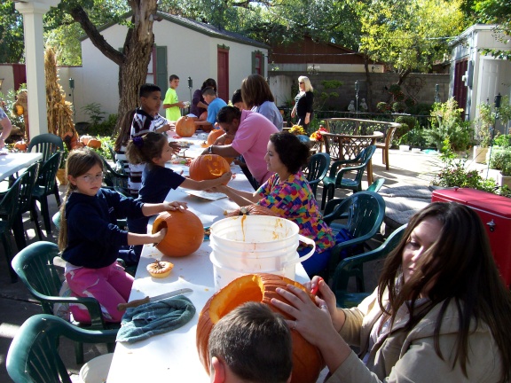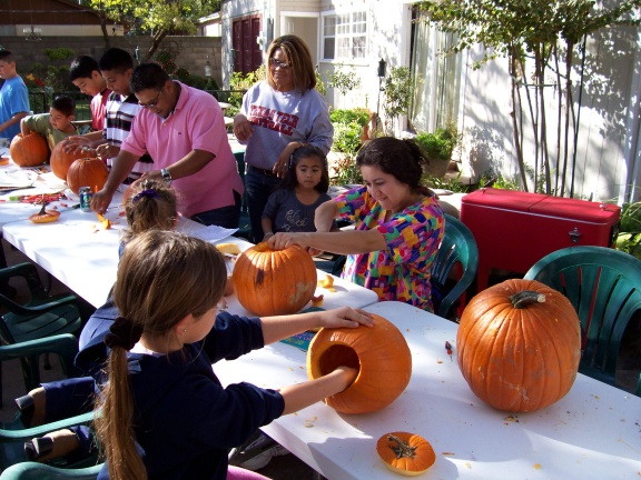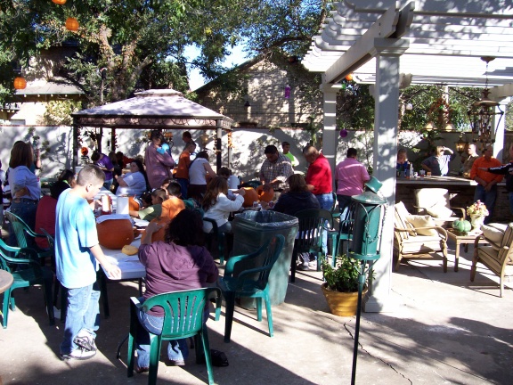 We had a pumpkin party at my neighbor's home an hour ago.  We carved pumpkins for Halloween on the 31st.  My Fratellone told me that it is not celebrated in Italy.  I had always thought that Halloween came from a European country.  I continue to learn!  We drank some good adult beverages and helped the children carve the pumpkins.  I hope this is not boring for my amici!