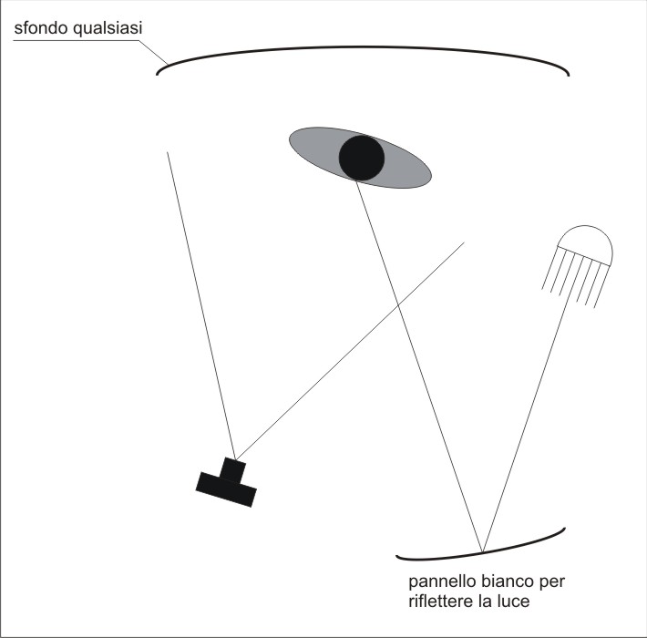 dove ho scritto "pannello bianco per riflettere la luce" puoi anche leggere parete bianca, o anta mobile chiaro.