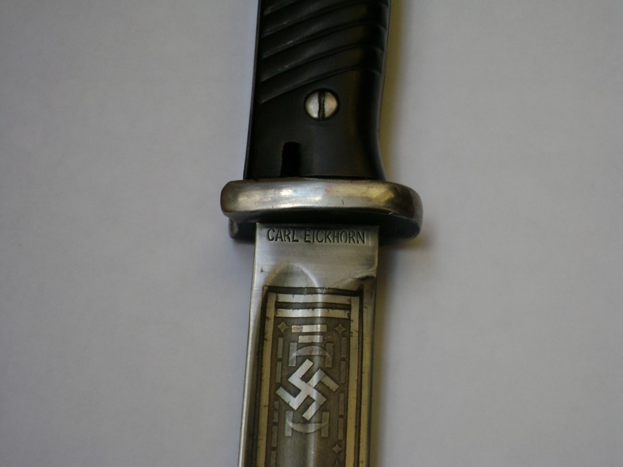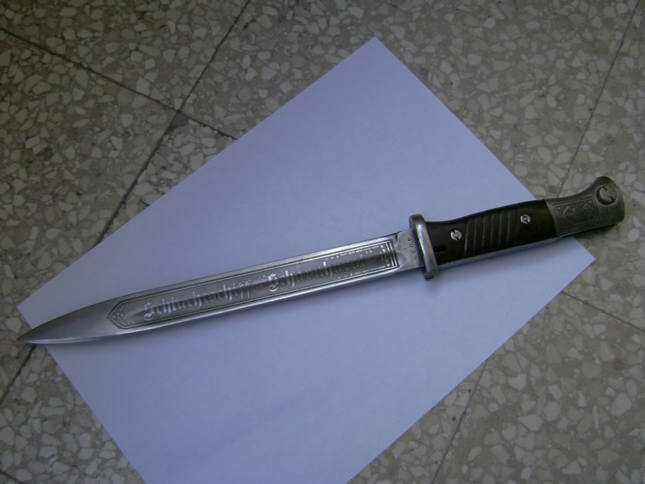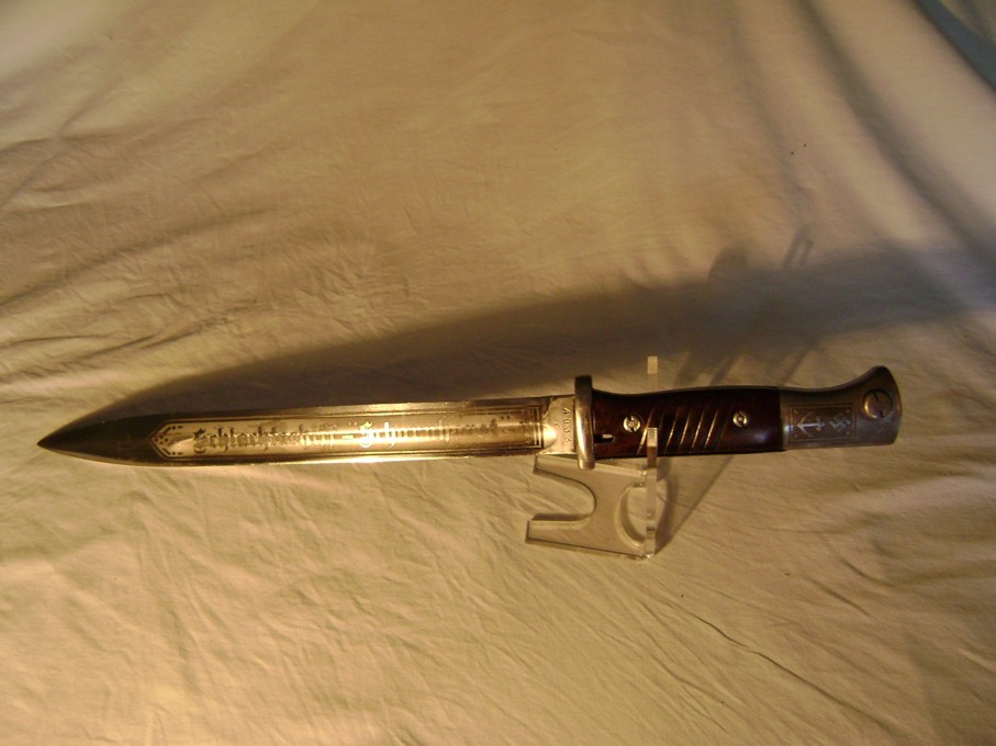 ciao e' chiaro innanzitutto che ogni arma postata,sia essa bianca o da fuoco e' regolarmente denunciata alle autorita' competenti.quando sulle lame o foderi non appare in chiaro il nome de produttore si mettevano i codici:il tuo asw corrisponde a :e&f horster & cie. ha prodotto dal 34 al 44.