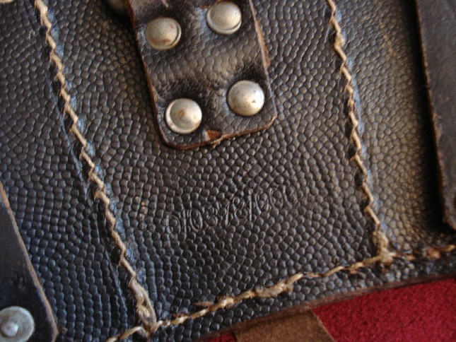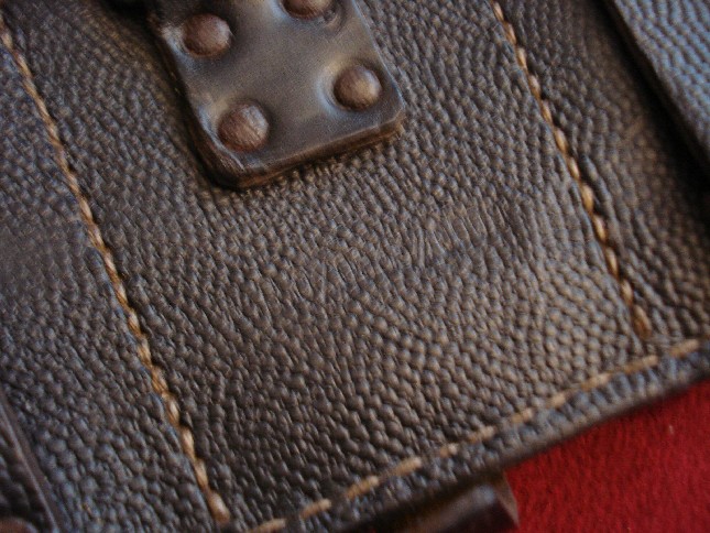 Come puoi vedere le giberne anche se di lavorazione differente ( rivetti o cuciture ) sostanzialmente sono uguali, può cambiare l' anello d'aggancio posteriore e la rivettatura dei  passanti posteriori  in cuoio; ma viste anteriormente quello che salta di più all'occhio è appunto la differenza tra cuciture e rivetti.