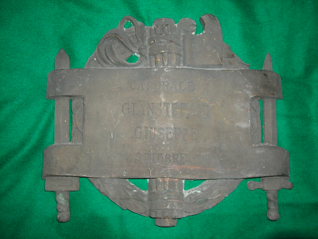 mi metto d'accordo sul prezzo e la compro. ripasso verso le 6 nei suoi paraggi e ne vedo un'altra sul banco.... ricompro anche quella e gli chiedo quante ne ha. Morale la settimana scorsa ne ho portate a casa 21 in totale. e sapete da dove vengono??? ebbene si ,dopo varie insistenze da parte mia mi ha confessato che hanno demolito un monumento reducistico per far spazio ad un centro commerciale!!!!e che le targhe lui le ha raccolte in discarica....<font color="red"></font id="red">IN DISCARICA!!!!<font color="black"></font id="black">