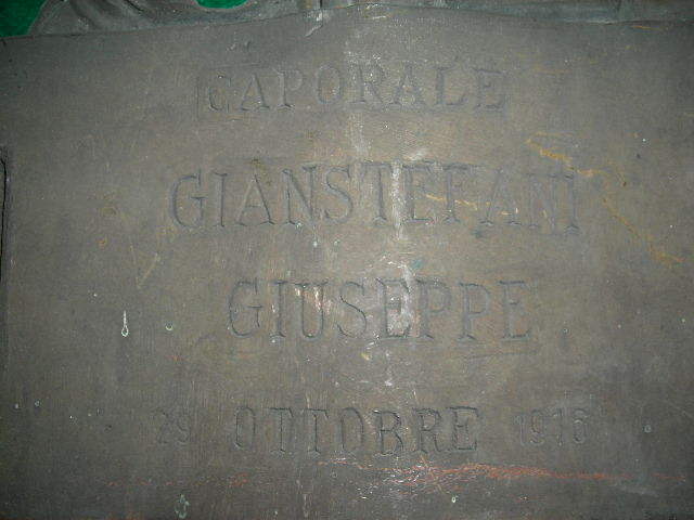 che sul banco ha una targa in bronzo con fascio littorio , penso subito ad un crest o roba simile , ma poi illuminandola con la mia fedela torcia a "l" mi accorgo della data : 1916..... é certamente la lapide bronzea di qualche caduto della prima , ricordato nel ventennio con una lapide.