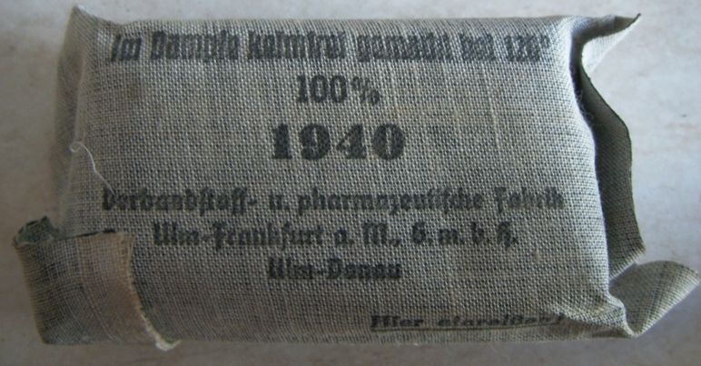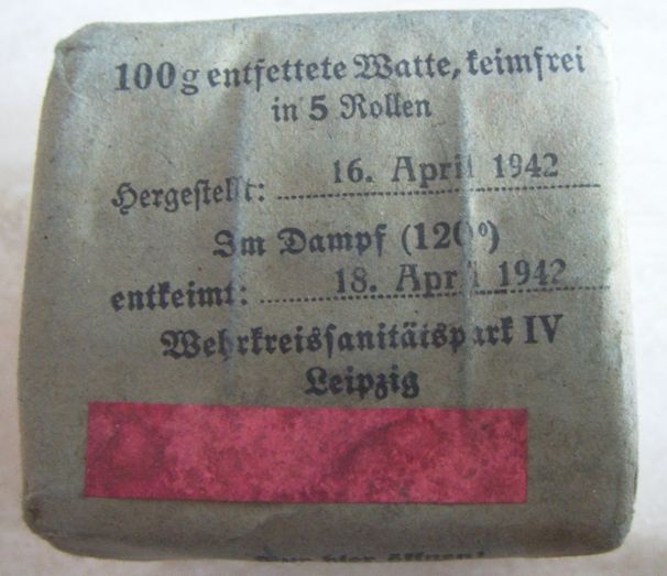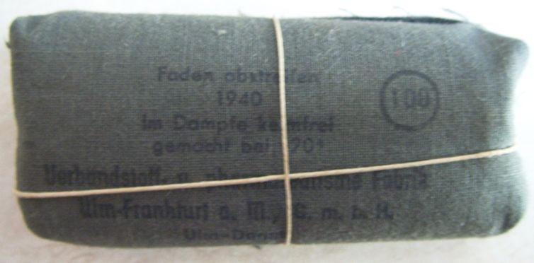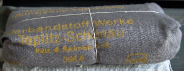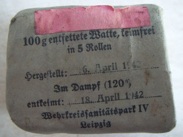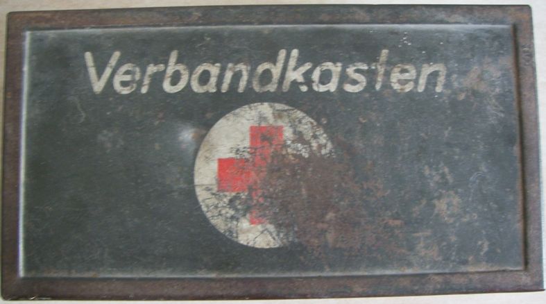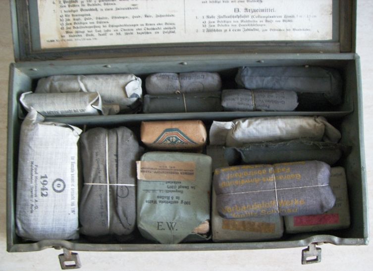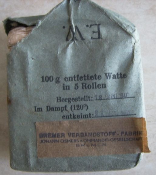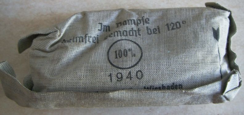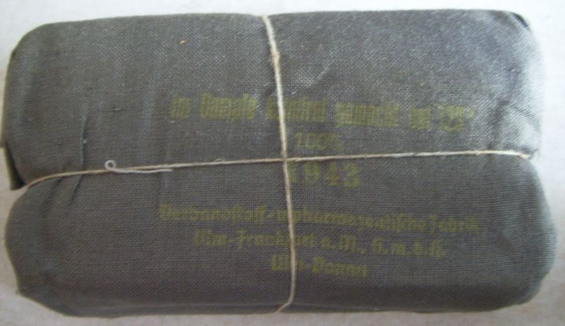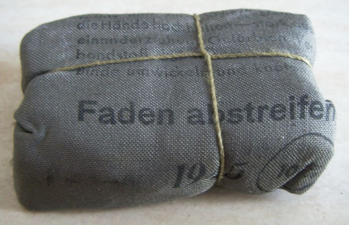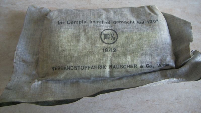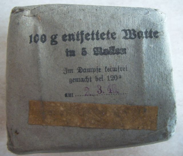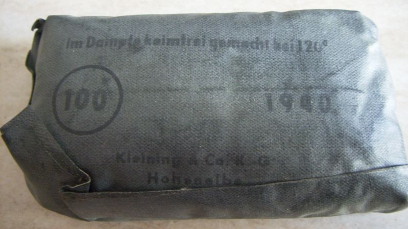 Come promesso metto sù i miei pacchetti di medicazione che per comodità tengo in una verbandkasten.Come dicevo i più vecchi sono datati 1940 ed i più recenti 1945.Forse non ne ho nemmeno uno datato 1941.Ce n'è uno che per me è molto particolare,in quanto è un pacchetto di medicazioni italiano della WWI al quale i tedeschi hanno applicato una striscia nella loro lingua e con tanto di data.