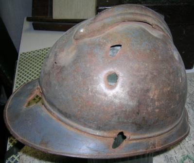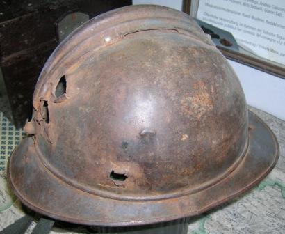 Guardate questo M1 che ho in collezione e che ho trovato personalmente.Ho formulato una mia ipotesi personale visto che ci sono sia fori di scheggia sia di proiettile.Probabilmente il proprietario è stato ferito od ucciso da una scheggia ed in seguito i suoi compagni hanno utilizzato l'elmetto mettendolo su di un fucile o su di un ramo per vedere se per caso i tedeschi stavano ancora sparando e per individuare l'eventuale direzione.