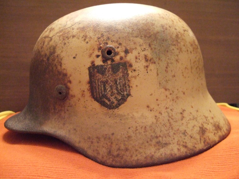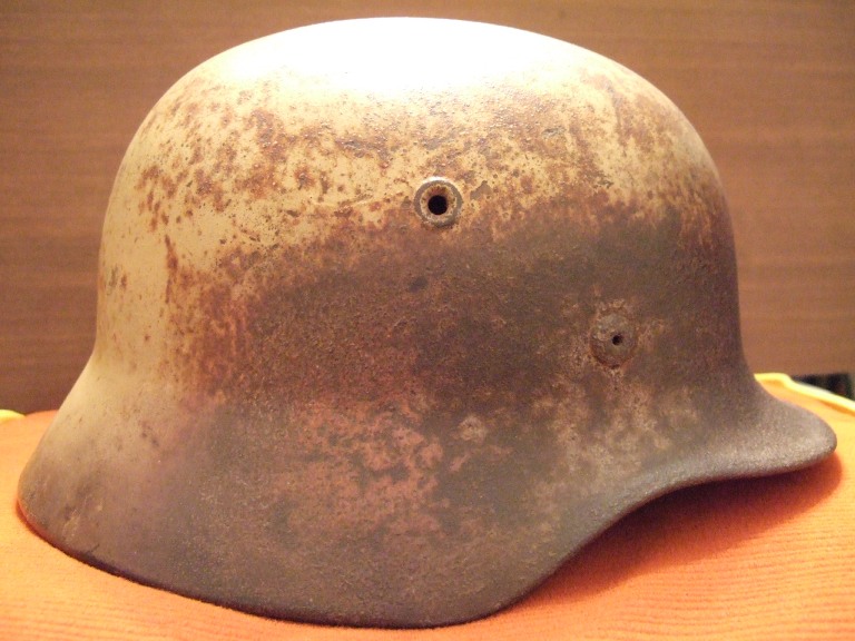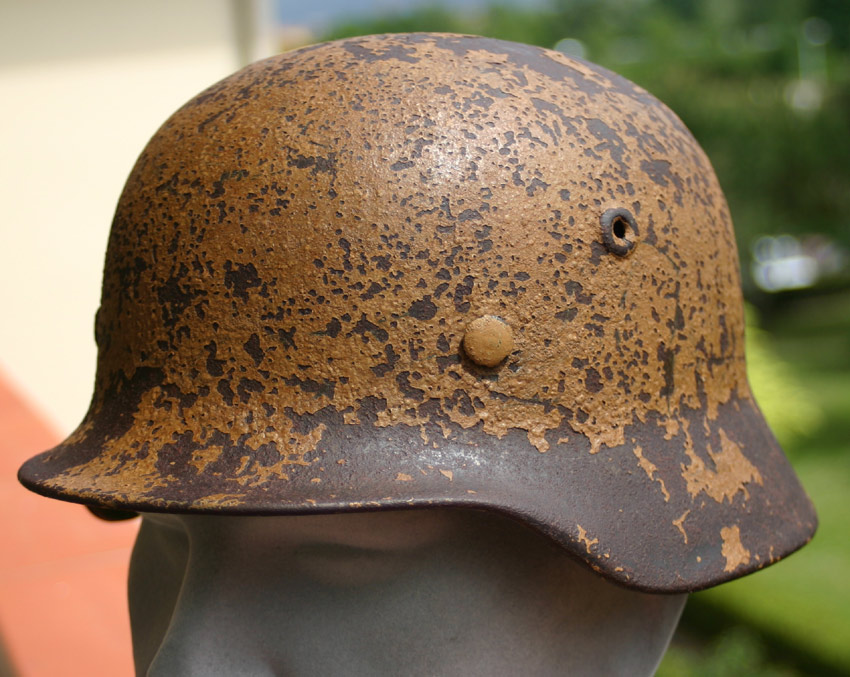 Begli elmi ragazzi pieni di fascino. In Veneto si è trovata molta roba tedesca. Sinceramente non so perchè, probabilmente penso che in queste zone i tedeschi in ritirata si siano liberati di molto del loro matriale. Dico ciò perchè tempo addietro anche a me è capitato di trovare in casa di conoscenti veneti molta roba tedesca tra cui diversi articoli usati nel nord africa (2 copricapo coloniali tedeschi, una borraccia DAK)..