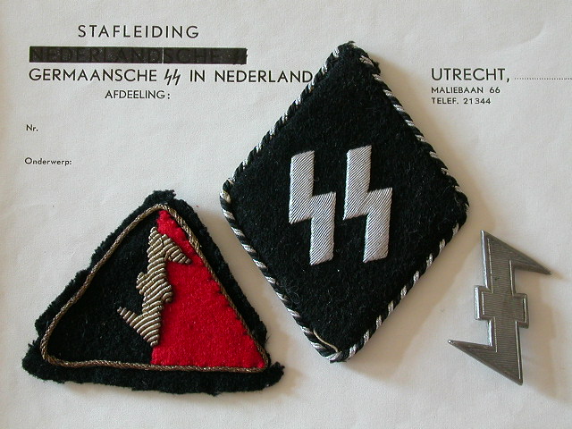 L`uniforme e le mostrine erano praticamente le stesse delle Allgemeine Tedesche, mentre le caratteristiche che distinguevano le Nederlandsche SS erano: