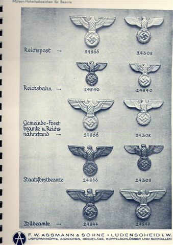 se guardi i cappelli che ho postato io "reichsforstdienst" e "reichspost" vedrai aquile molto simili alla tua. peccato per i fermagli...