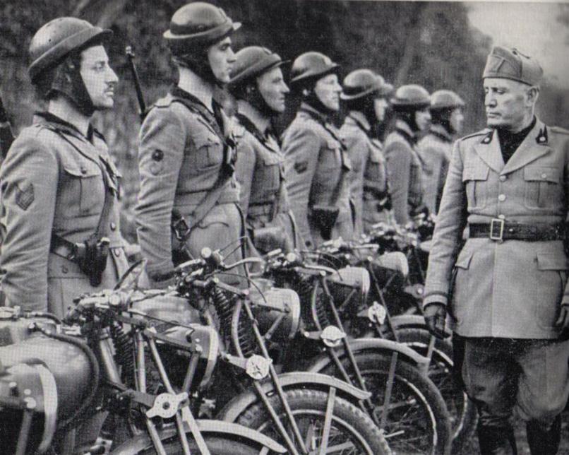 "Gargnano (Brescia), marzo 1945. Una delle ultime ispezioni compiute da Mussolini..."
