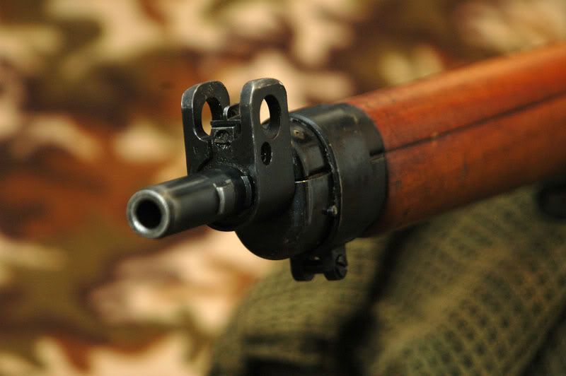 Un altro particolare dell'Enfield....la caratteristica volata,con la solita baionetta "Spike" inastata. La baionetta č regolarmente denunciata assieme all'arma....