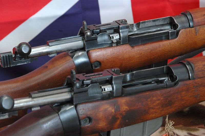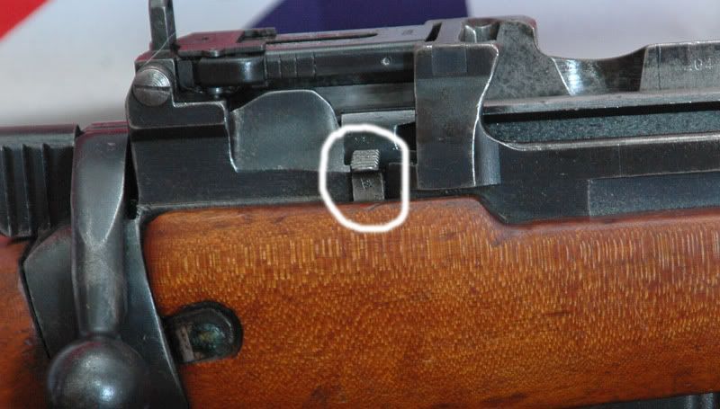 Negli Enfield con asterisco,č stata tolta la levetta,che una volta premuta,permette l'estrazione dell'otturatore dal receiver....ecco un paio di foto esplicative.... In alto l'azione dotata di levetta (quindi Mk I) ed in basso l'azione modificata con l'eliminazione della levetta (quindi Mk I* )