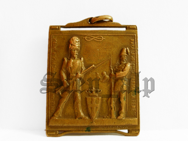 vi allego due "medagliette" che ho in casa da parecchio tempo. non ne capisco l'utilizzo visto che non hanno il classico anello per "infilare" il nastro... e tantomeno la spilla per fermarle in qualche modo...