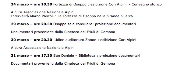 Stamattina ho visto un servizio alla televisione che parlava di una mostra sulla Grande Guerra in Friuli: Chiesa S. Antonio Abate, Udine, fino al 10 aprile 2007.
