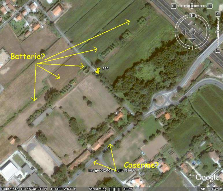 Potrebbe essere di sicuro interesse andare a darci un'occhiata per gli amici residenti a Carrara e Massa (rispettiamo le competenze territoriali!) ai quali chiedo anche se hanno qualche notizia della batteria Saint Bon nei pressi del Cinquale e armata con 4 pezzi da 120 (magari una localizzazione con G.E.)