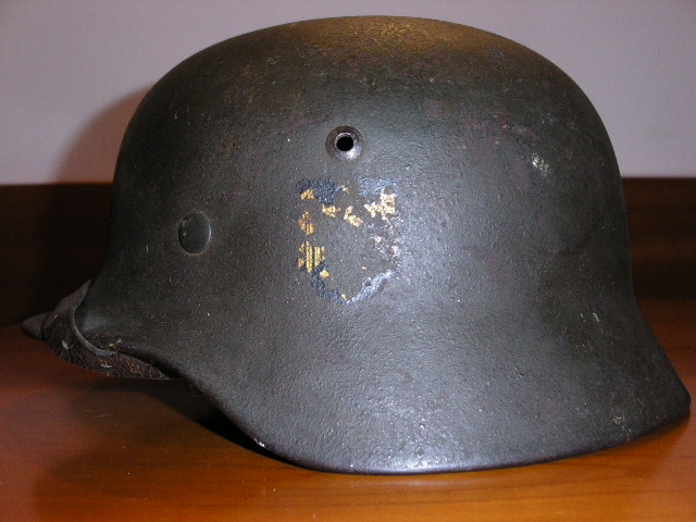 Salve a tutti,ecco un'altro elmo dela mia piccola collezione,si tratta di un M35 della marina,produttore SE Sächsische Emaillier u. Stanzwerke,decal svuotata.interno modello 40,soggolo marcato G. Scheile, Loburg 1940.