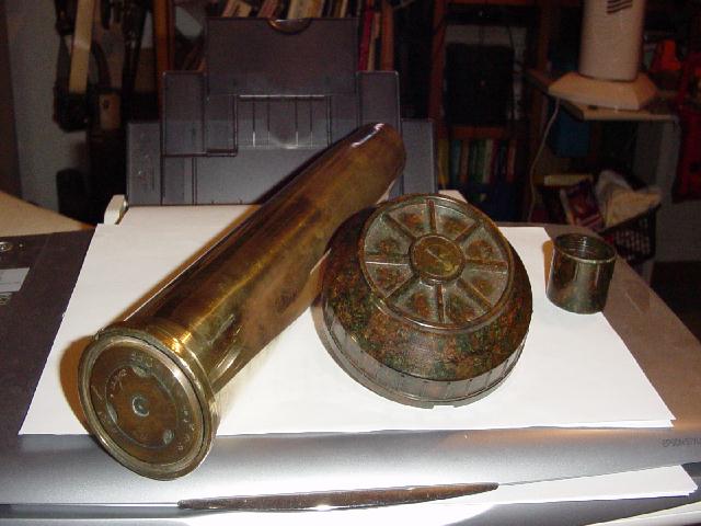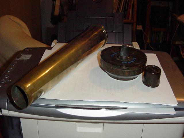Vedo un bel bossolo sembra inglese.... ed una mina in bachelite che mi incute mooolta paura. Il tutto non mi sembra del periodo bellico... non so, potresti postare altre foto, anche del fondo del bossolo