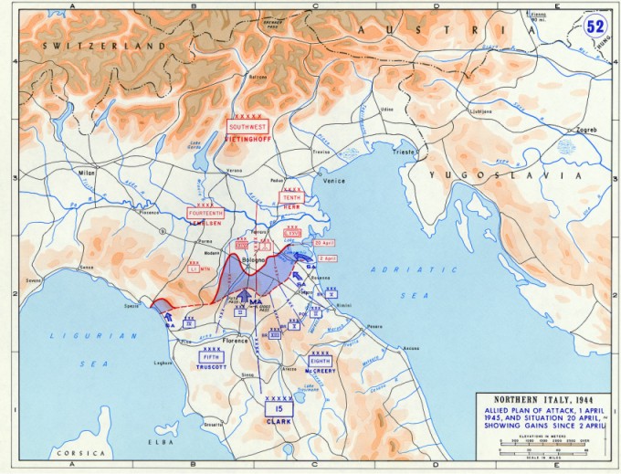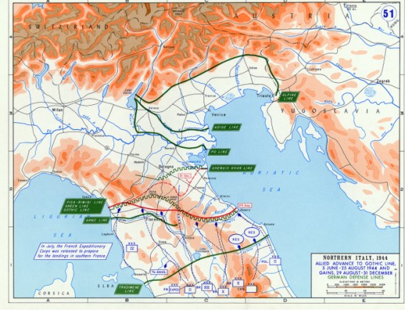 ...the map may be that of "Northern Italy, 1944", but the borders are very much post-war...