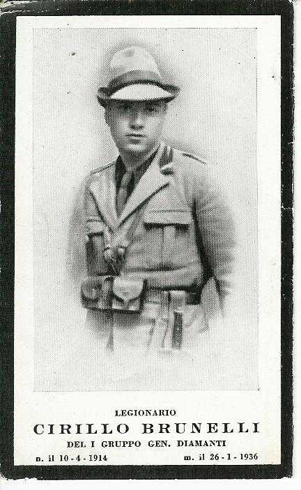 Signori Di Ciao! Spero di honor un signore dal nome di Cirillo Brunelli. ā? morto nella regione di Tembien in 1936. Questa impressione dell'uniforme č basata senza bloccare sul suo "avviso di morte". Spero che sia corretta. Lascilo prego sapere se devo correggere qualcosa. Il copricapo č lepidottero mangiato e che manca un cavo. Nella Borsa Amichevole, Arditi[]