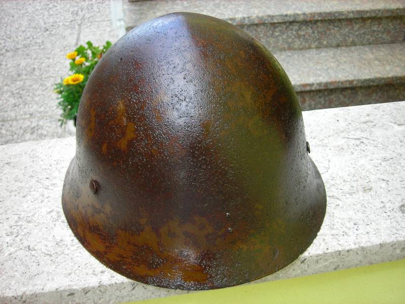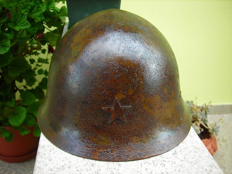 L'elmetto presenta ancora tutti i rivetti e la bellissima stella sul frontale, ma anche gran parte della vernice.