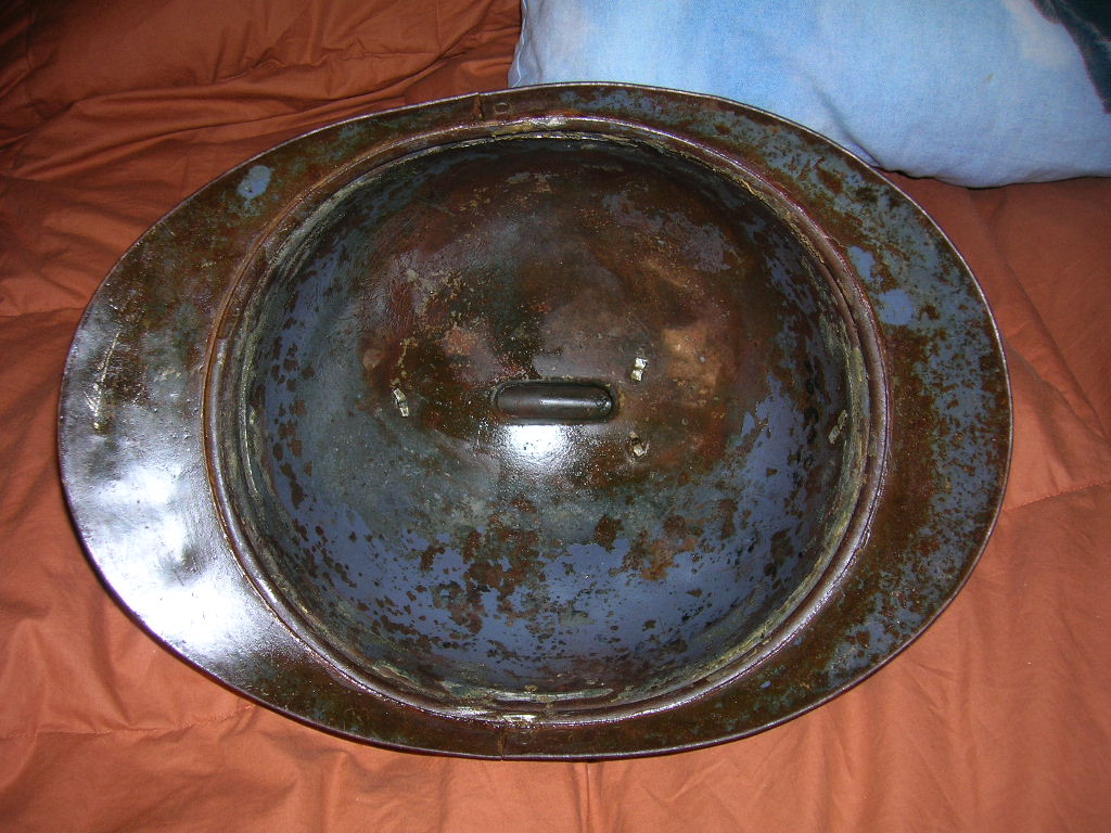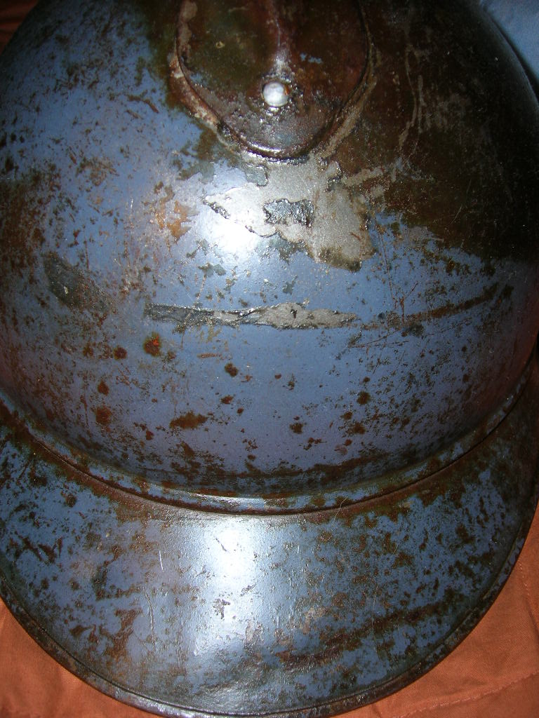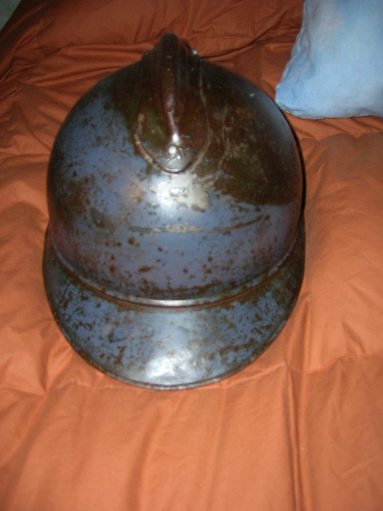 di prima fornitura francese (anzi di seconda visto che i primi avevano anche la granata marchiata RF) e come si vede dalle foto è privo dei due forellini per il fregio, il colore è quasi completo (c'è una chiazza tondeggiante marrone dovuta a qualcosa che è caduto sopra
