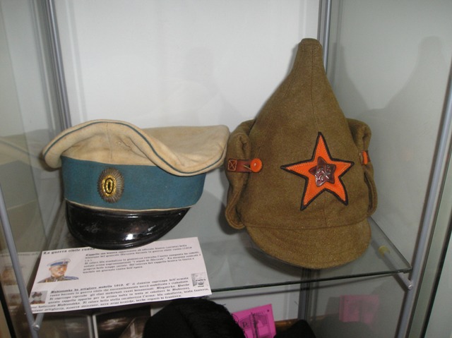 budynovka da artigliere "rosso" e cappello da ufficiale "bianco" della divisione alexeyev.