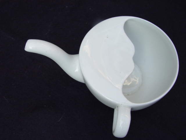 Avevo già* visto attrezzature WWI da ospedale un pò strane, ma questa è geniale. Trattasi di una tazza grossa come una da caffellatte per nutrire (immagino con un bel brodo) gli invalidi direttamente a letto
