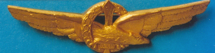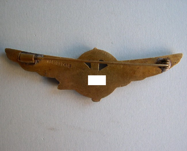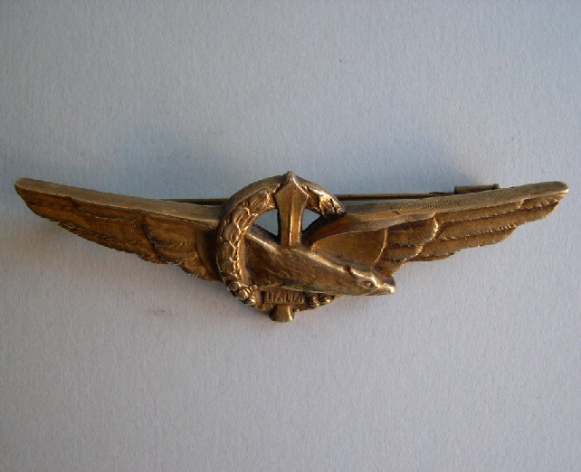 Si tratta del brevetto da pilota dell'A.N.R. mod.44. Tale brevetto sostituì il precedente mod.35, modificato con l'asportazione della corona regia, in uso nel primo periodo della Repubblica Sociale.