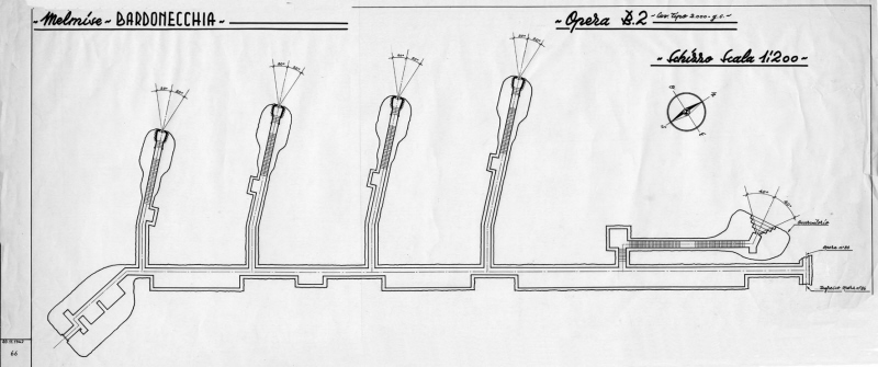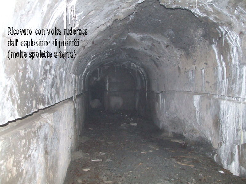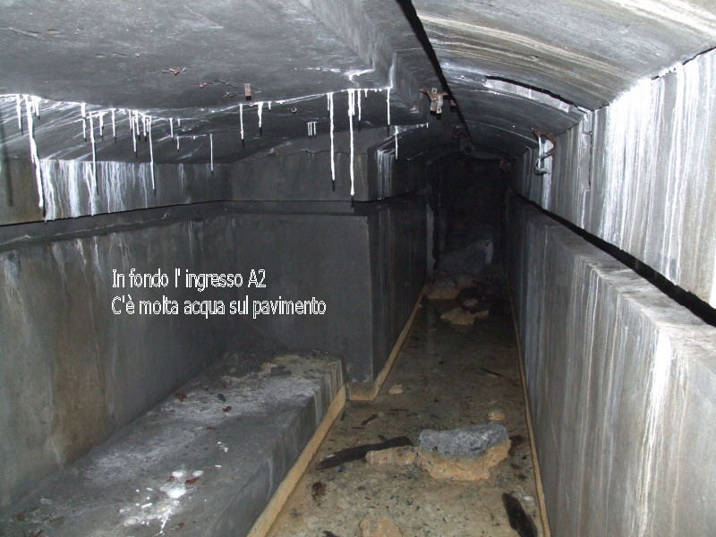 Al momento gi unici ad essere entrati siamo io e Domini. L' interno è umidissimo e fa molto più freddo che nelle altre opere, alcuni settori sono immersi nell' acqua, ho dovuto crearmi un passaggio lanciando massi qua e là*! L' opera è stata l' ultima ad essere abbandonata dai tedeschi, nulla comunque è rimasto (dopo il mio passaggio e quello di domini non rimane più nulla).