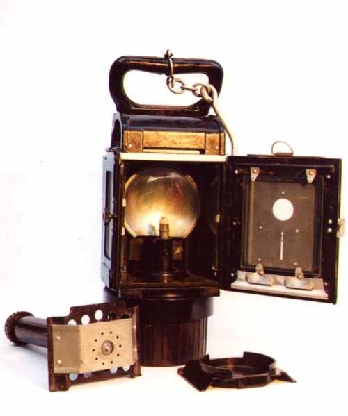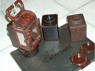 CASSA COMPLETA IN OGNI SUO PARTICOLARE per Lanterna tedesca in bachelite WW2. Funzionamento carburo / cera