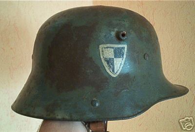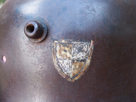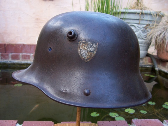 Evening Gentlemen! Again, please forgive my Babel Fish translation. It does not give credit to your beautiful language. Here is a M16 helmet to the German 1st Guards Regiment of WW1. I believe the Guards Regiment was one of the few German units authorized to paint the Hohenzollern Shield on their helmet. Correct me if I am mistaken please. US units fought this unit during the St. Mihiel offensive. This was probably a battlefield pickup. I paid a very low price for this helmet in a local Gun store, so I am certain it is original. It's unusual in that it is painted in rust brown. The feldgrau can be seen under the rust brown paint. Hope you enjoy it! Best Regards, Arditi[]