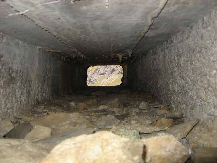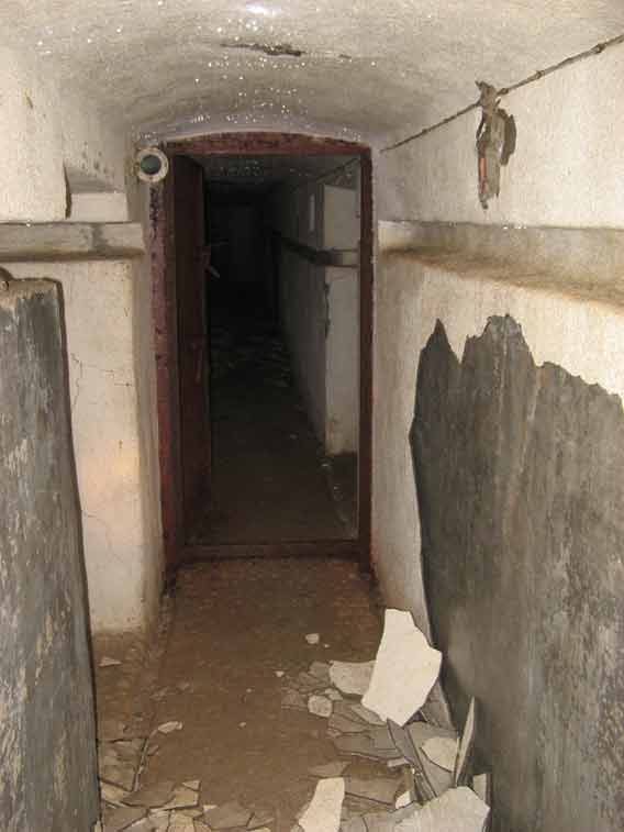 Il lato E del ricovero R2,visibile a sx la diramazione verso il gruppo elettrogeno N.2 e l'uscita di emergenza 2.Diritti si sale verso l'uscita N.2