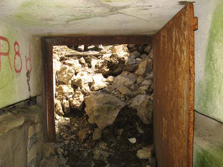 Iniziamo la nostra visita raggiungendo l`ingresso ubicato nella parte dx del malloppo A1 e con qualche difficoltà*,a causa della frana nella trincea di accesso lo spazio per accedere non è molto,ci addentriamo all`interno.Dopo aver superato un andito a baionetta svoltiamo a dx per entrare nella casamatta trovando di fronte il vano della fotofonica e a sx la casamatta dell`arma A1.Tralasciando la derivazione che conduce all`ingresso proseguiamo diritto e dopo aver disceso una scala troviamo a sx il vano del gruppo elettrogeno GE1 e l`inizio del cunicolo dell`uscita di emergenza N1,che percorriamo fino alla porta metallica dell`uscita.Ritorniamo indietro e percorriamo il corridoio fino all`inizio del ricovero R1,qui una derivazione a dx ci condurrà* alla casamatta del malloppo A2.Giunti alla casamatta A2 la mancanza della scala a pioli metallica ci costringe a qualche acrobazia per potevi accedere,il dislivello e di circa due metri,ma comunque servendosi delle scanalature nelle pareti(siano benedette) la cosa è fattibile con prudenza.Ritorniamo al ricovero R1,dall`estremità* opposta si diparte il corridoio,lungo oltre cento metri,che ci condurrà* alla seconda sezione.Dopo aver superato i vani dei depositi dell`acqua e della presa d`aria giungiamo alla base di una scala di venticinque gradini,la percorriamo e dopo un pianerottolo iniziano due ulteriori rampe di scale, il corridoio è scavato nella roccia e non rivestito,per un totale di cinquantacinque gradini,tutti in salita.Al termine di queste il corridoio,ora nuovamente rivestito,ci conduce alla base del pozzo della torretta della mitragliatrice(privo della scala metallica per la risalita) e successivamente,dopo aver disceso altri otto gradini, al ricovero R2.In fondo al ricovero una diramazione a sx ci conduce al vano del gruppo elettrogeno N.2 a alla seconda uscita di emergenza,anche questa inagibile per frana.Dopo aver percorso questa diramazione torniamo al ricovero,percorriamo la diramazione che si diparte a sx e dopo aver disceso 17 gradini giungeremo alla base del pozzo del malloppo d`ingresso N.2.La mancanza della scala metallica ci impedisce di proseguire per cui ripercorreremo a ritroso tutto il Centro fino a raggiungere nuovamente l`ingresso N.1 da cui siamo entrati.