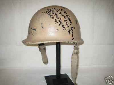 Questo elmo usato dagli iracheni negli anni novanta e' di produzione sud coreana.