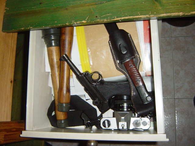 Sono granate di legno totalmente inerti, la Luger è una replica, anch'essa inerte e la baionetta è di quelle finte in alluminio, il disordine però è vero, purtroppo...[innocent]