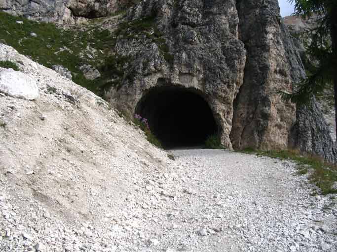 Strada militare che conduce al Col dei Bos.La galleria è stata realizzata dal 5° Alpini nel 1917