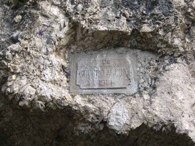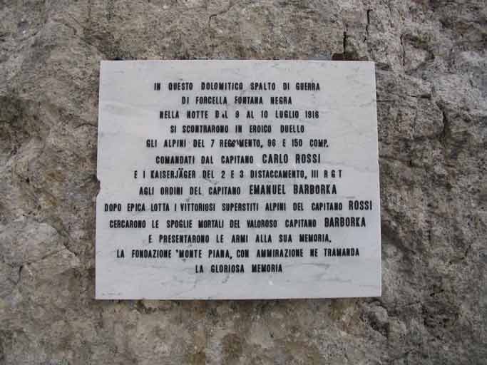 La targa posta a ricordo della conquista Italiana di Forcella Negra
