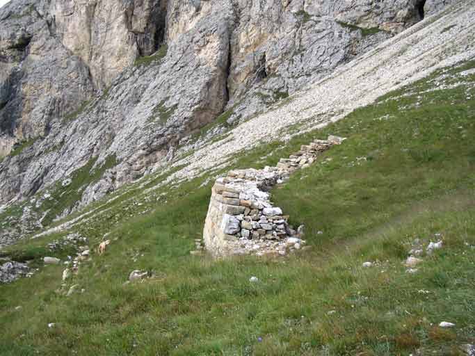 Prendendo spunto dal Topic sulla recensione del libro"La montagna che esplode" posto oggi alcune fotografie dei resti di costruzioni Italiane scattate durante un`escursione nella zona della Val Travenanzes-Tofana di Rozes.(Dolomiti).Quì si fronteggiavano le prime linee Italiane ed Austriache.La mancanza di documentazione ed il poco tempo a disposizione,l`escursione era molto lunga,mi hanno impedito un`esame approfondito di queste postazioni.Come al solito saranno gradite integrazioni e precisazioni.Spero comunque che queste poche foto vi spingano ad effettuare qualche escursione in zona,non ve ne pentirete sicuramente.Da parte mia,purtroppo la distanza da Torino è notevole,non mi resta che attendere il prossimo mese di agosto per ritornare in questa zona senza naturalmente trascurare il vicino Lagazuoi.