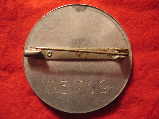 E' realizzato in alluminio e presenta al retro un attacco a spilla e il numero progressivo.