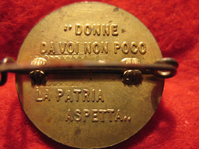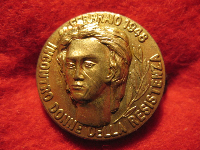 Il distintivo che segue è stato coniato in ottone,per un incontro fra le "donne della resistenza" tenutosi nel febbraio del 1948.Il periodo storico e la frase al retro,la dicono lunga sul clima politico e sociale di quel tempo.