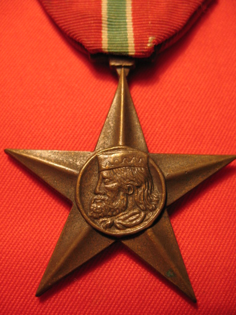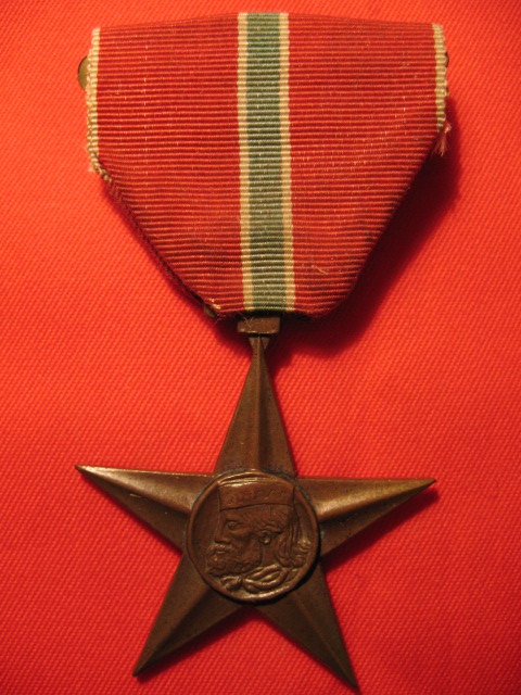 Si tratta di una medaglia ispiarat nella forma,nelle dimensioni,nell'attacco cambretta e nella disposizione dei colori sul nastro,alla bronze star americana.