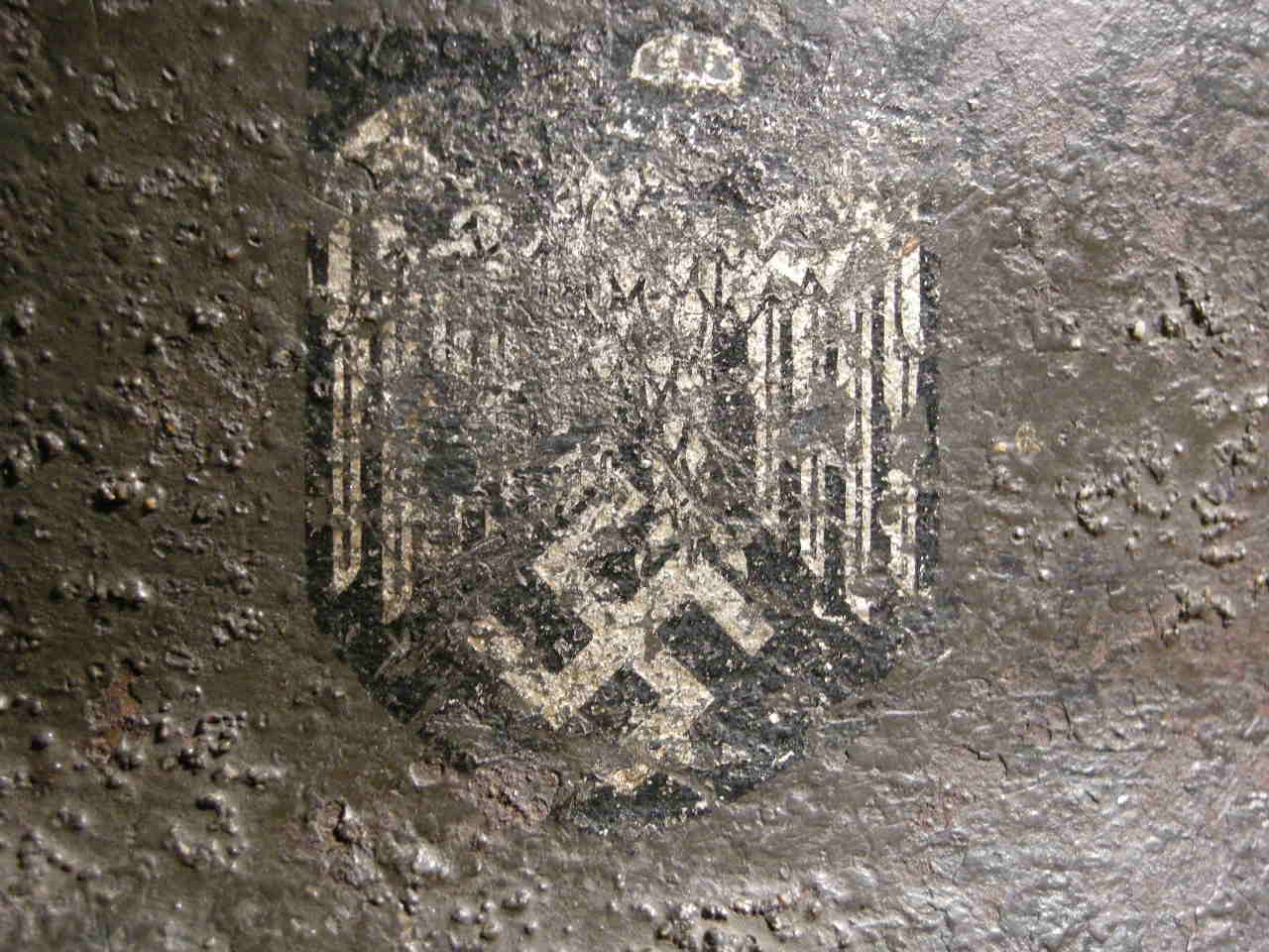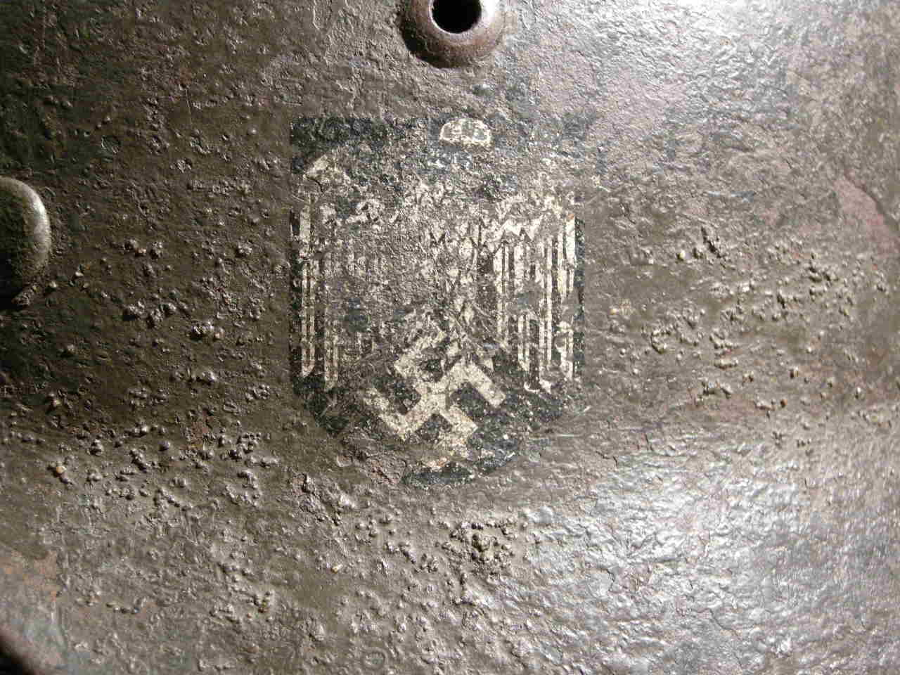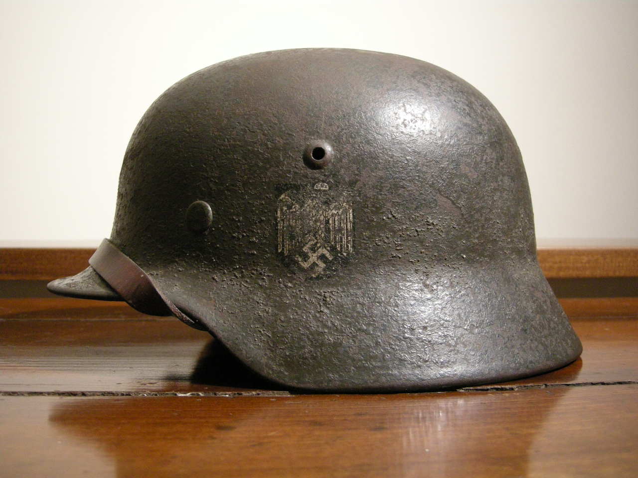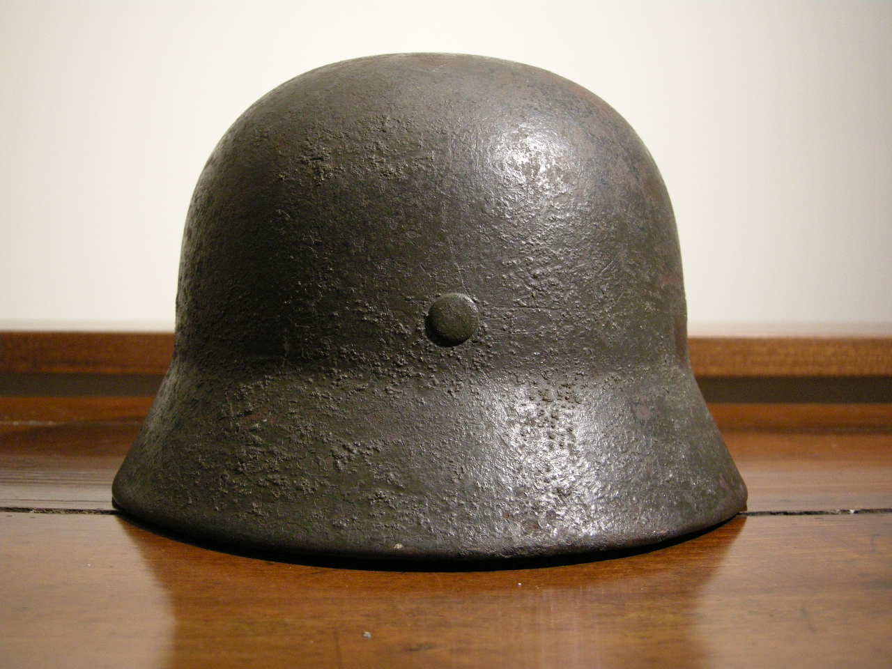 vi presento il mio primo regalo un m35 wh.l ho comprato da un collezionista di cui mi fido.probabilmente e' appartenuto a due soldati dato che sotto il nome il metallo e' stato grattato(cosa fatta a suo tempo)e sotto la decale nella parte superiore sotto quello che e' rimasto della testa dell' aquila si vede la punta di un becco d' orata forse era un krieg?!all'interno dell'imbottitura vi e' un timbro con su scritto b57i44 non riesco a capire chi sia il costruttore dato che ho poco spazio per vedere tra il cerchione e il guscio e non voglio forzare,con una torcia riesco comunque a intravedere dei marchi:a voi i commenti...
