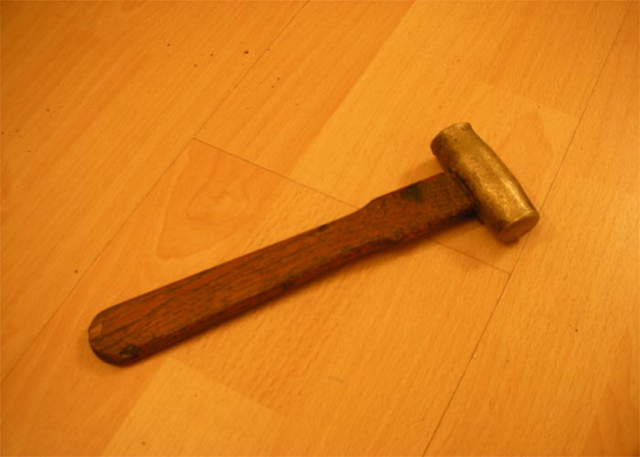 Vi posto la foto di questo martello, comprato anni fa da mio padre in un qualche mercatino; mi ha sempre detto che si tratta di un martello militare e che la parte battente è in ottone proprio per evitare la formazione di scintille quando lo si usava in presenza di esplosivi...non so di che periodo sia, qualcuno ha qualche idea?