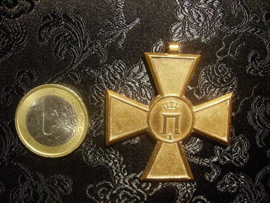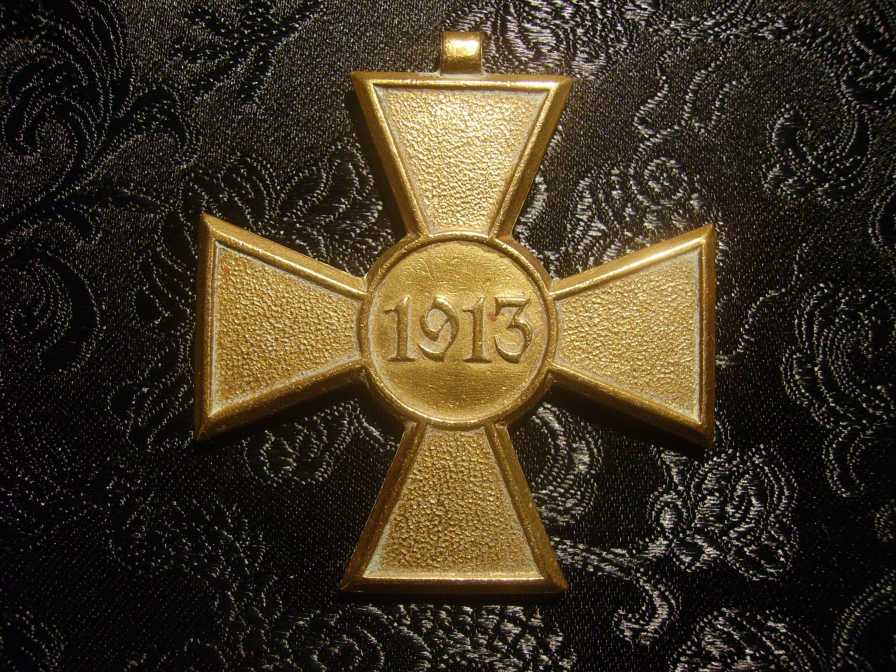 tra il monetame che conservava mio nonno c'era una specie di "croce di guerra" , in ottone con una data da un lato e una corona e una specie di simbolo greco dall' altra .