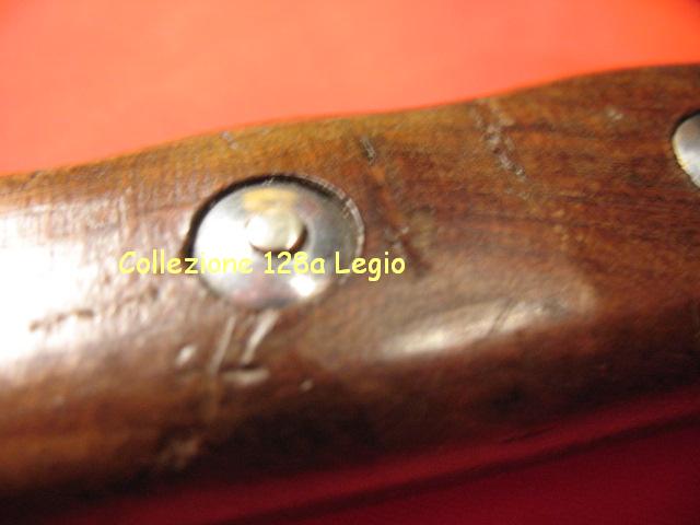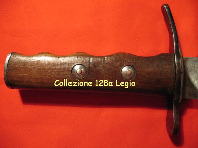 Le rosette che tengono l'impugnatura, nel primo modello erano ralizzate in metallo chiaro ed erano sullo stesso piano del legno;nel secondo modello sono affondate nel legno come nei pugnali per assaltatori e possono essere cromate,brunite o in metallo naturale.