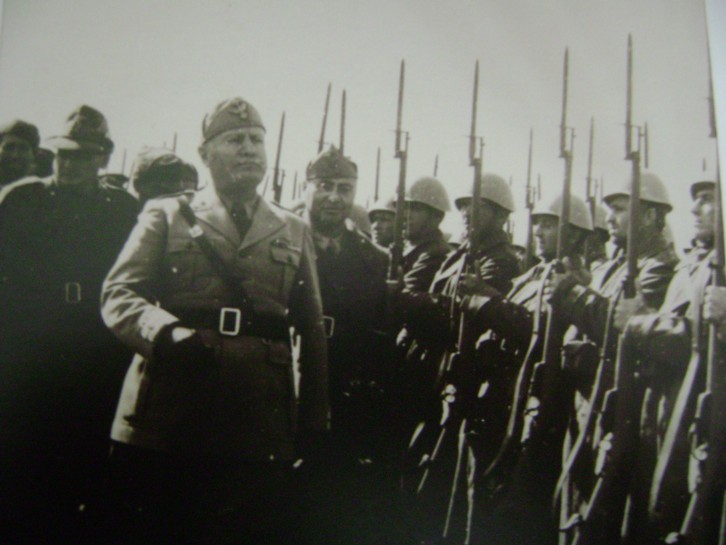 Hanno sfruttato l'effetto del dislivello per non mostrare che il Duce era bassino e che tutti i soldati sarebbero risultati in foto più alti di lui.